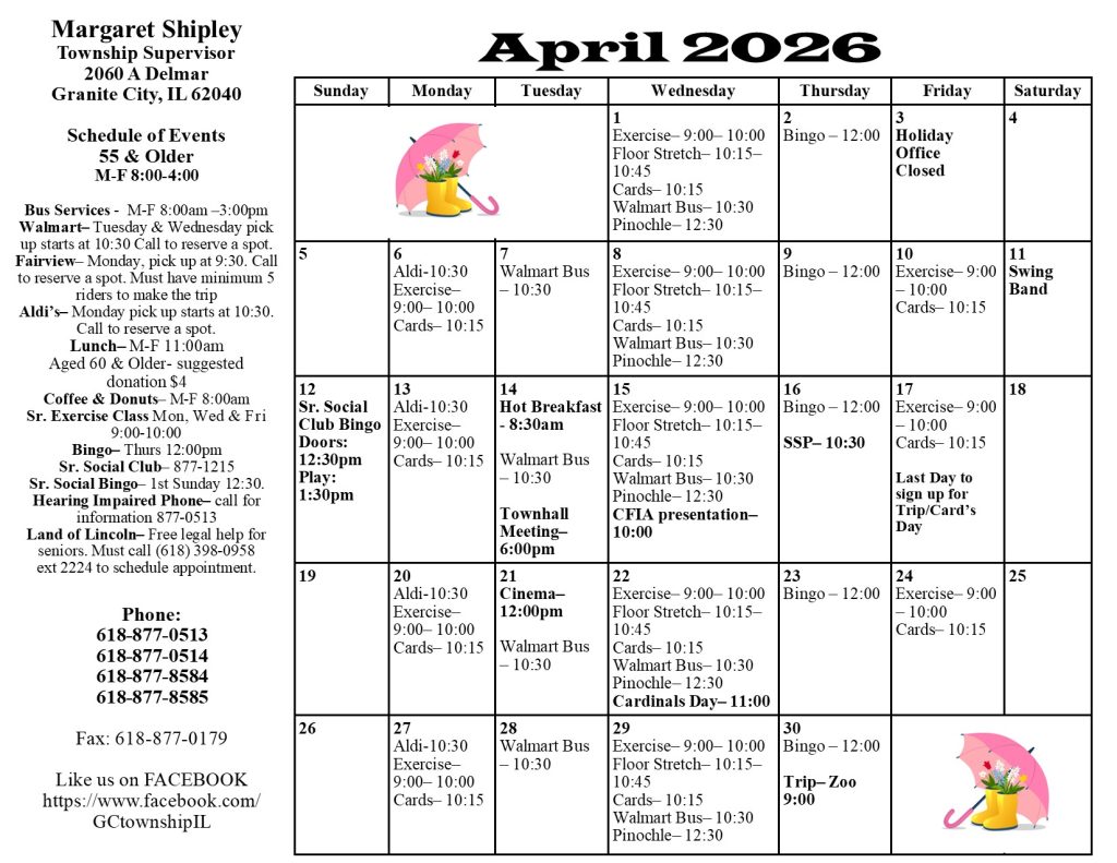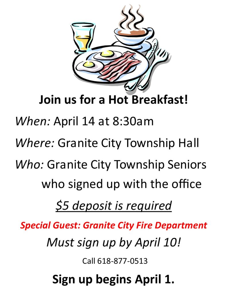 Granite City Township residents call to reserve your spot.